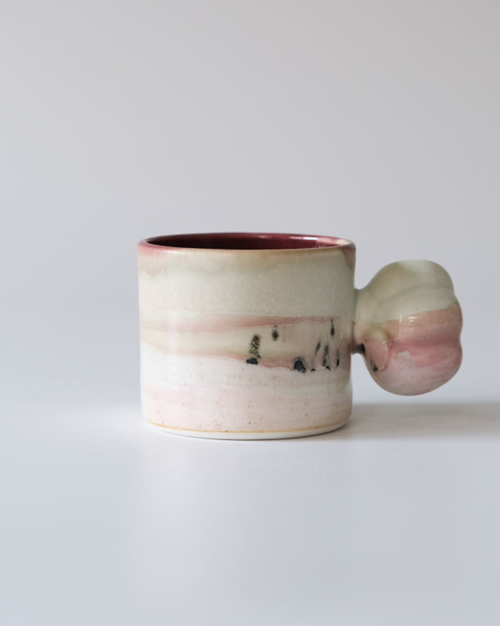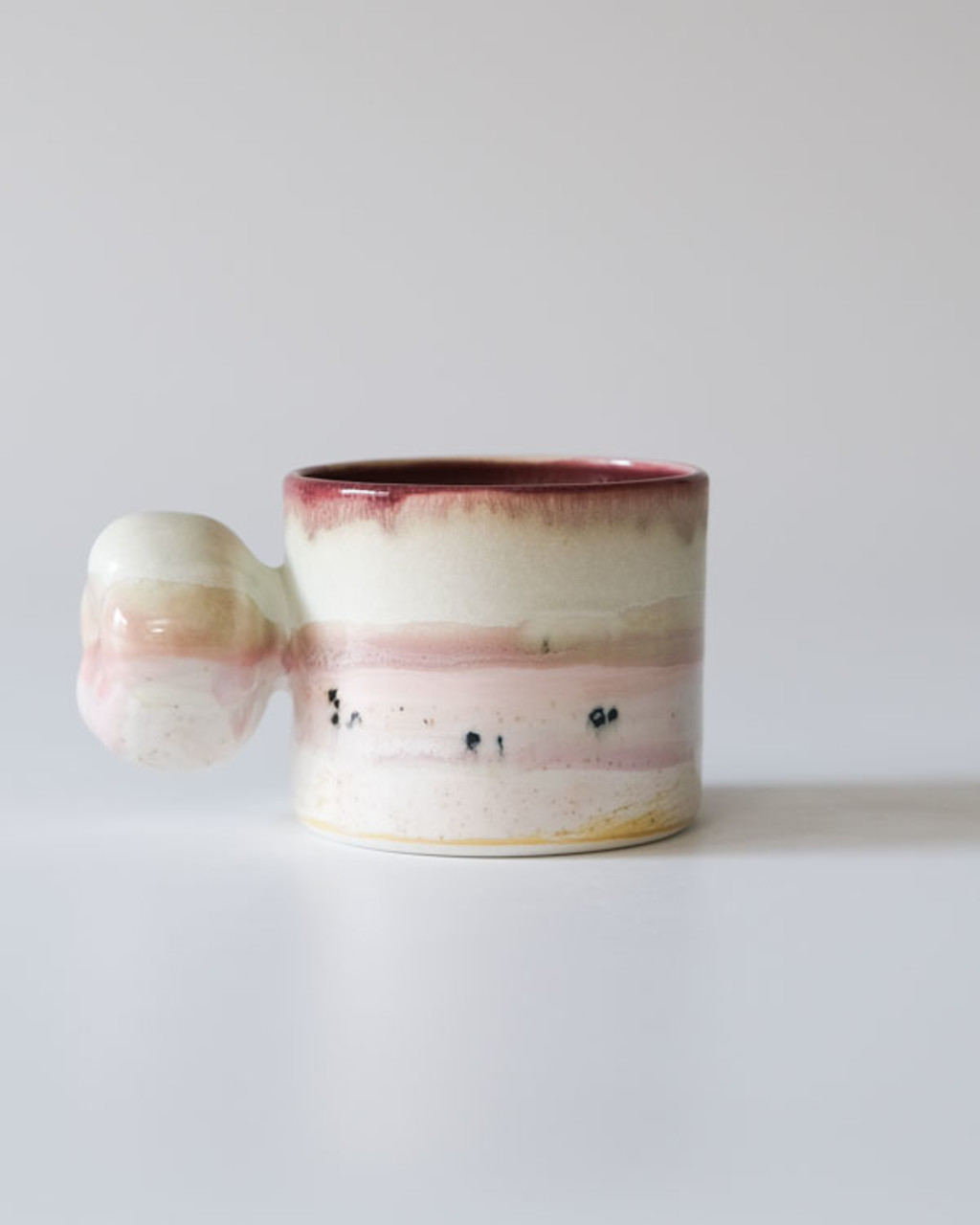 · 100% 수공예로 제작되어 형태의 비정형성, 유약의 흐름 자국 및 뭉침, 농담 차이, 표면의 돌기, 기포가 빠져나간 흔적, 바닥면의 소성 흔적, 그리고 유약과 흙에 포함된 철 성분으로 인한 검은색 또는 갈색 점 등이 나타날 수 있습니다.